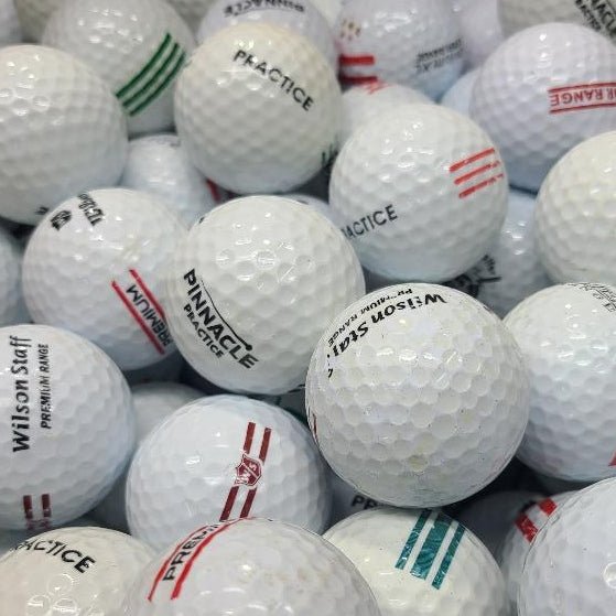 Our Range / Practice golf balls are for practice on the driving range. These balls typically have stripes on them, logos, or the word PRACTICE stamped on them. We carry FOUR grades of these balls: A B C and D.